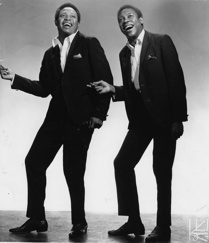 Although the duo achieved a degree of success in California, it remained geographically limited, and after a final single on another Stone label, Alston, Henry Stone put the duo in contact with Jerry Wexler. Wexler signed them to Atlantic but sent them to record at Stax in Memphis. Musically, the magic happened right away, and success arrived as early as 1965 when they were entrusted to the team of Isaac Hayes and David Porter. At the time still relatively new to the industry, the two songwriter-producers created the musical formula that would make the duo’s success, notably by giving the lion’s share of lead vocals to Sam Moore, while Dave Prater generally provided backing vocals and occasional callouts. The commercial results were striking: from late 1965 (You Don’t Know Like I Know) through early 1968 (I Thank You), the duo placed seven singles in the Top 10 on the R&B chart, two of which also cracked the Top 10 pop chart. Soul Man, their biggest hit, reached No. 2 on the Hot 100. Their on-stage reputation—fueled by dynamic live shows—spread all the way to Europe, and they nearly stole the spotlight from Otis Redding during the famed Stax tour that made a notable stop at the Olympia in Paris in 1967.